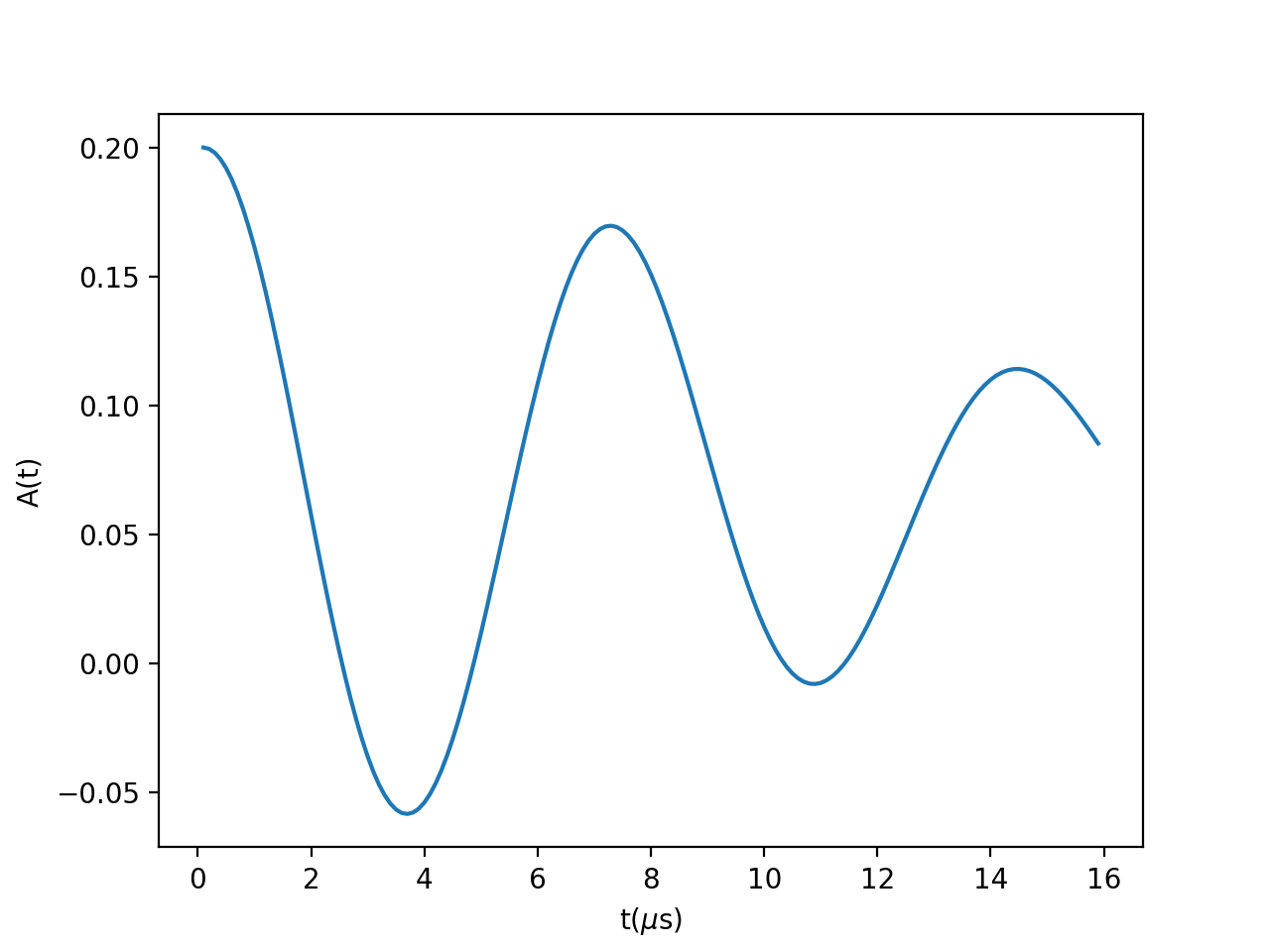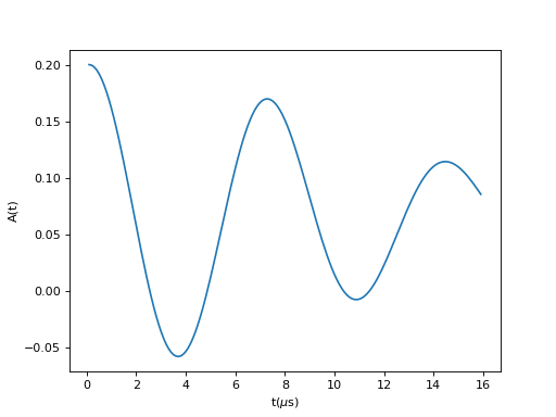 \[\begin{split}A(t)=A_0 \left(\frac13+\frac23e^{-(\Delta t')^2/2}\left(\cos(\Delta t)-\frac{\Delta^2}{\omega} t\sin(\omega t)\right)\right)\\\end{split}\]