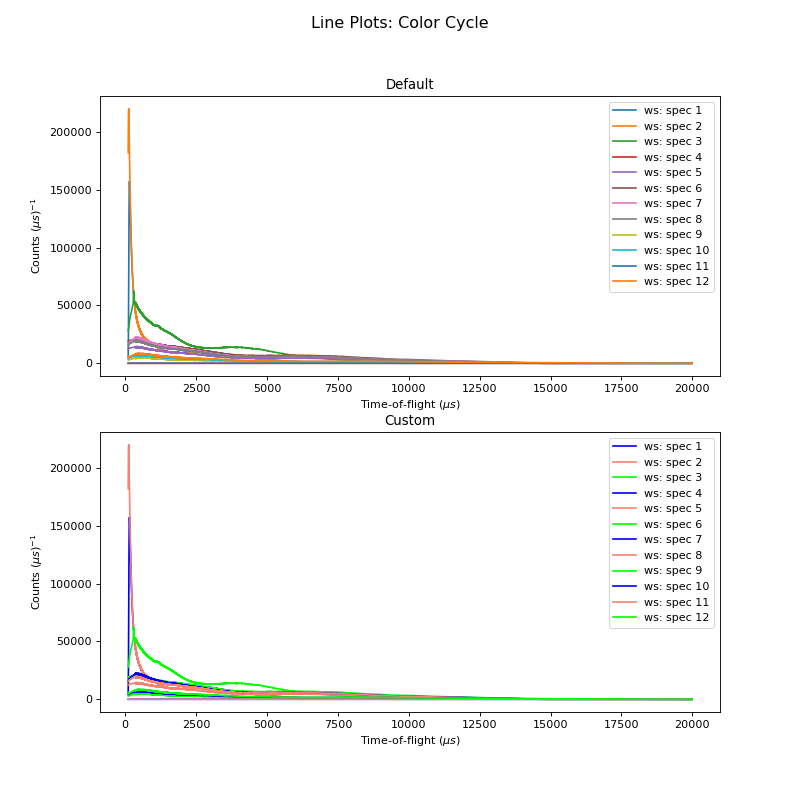 Mantid Workbench session. The example below shows a plot with the default line width, followed be resetting the parameters with rcParams. An example with many of the
