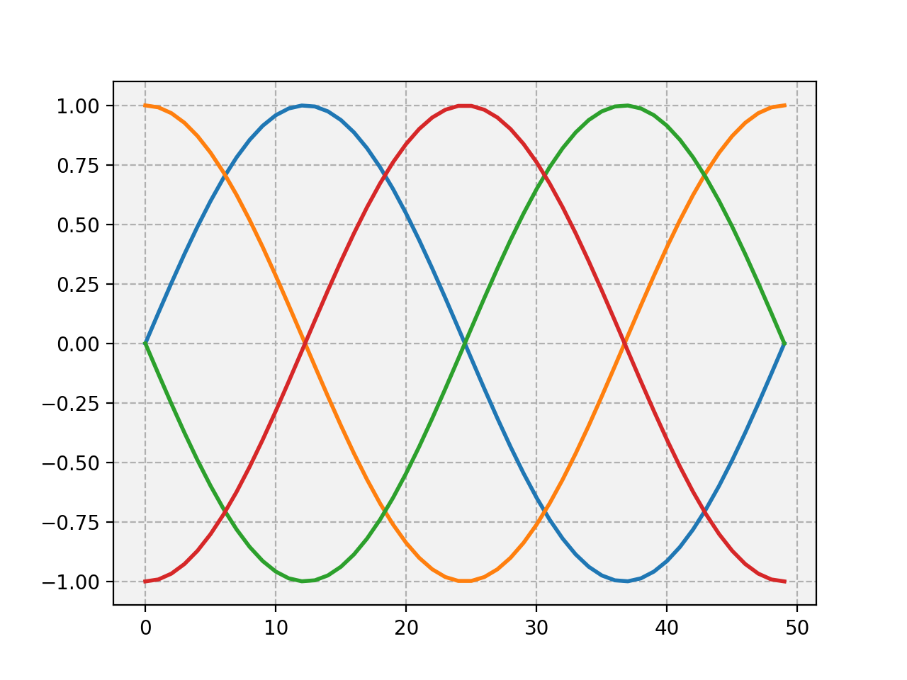 yy = np.transpose([np.sin(x + phi) for phi in offsets])