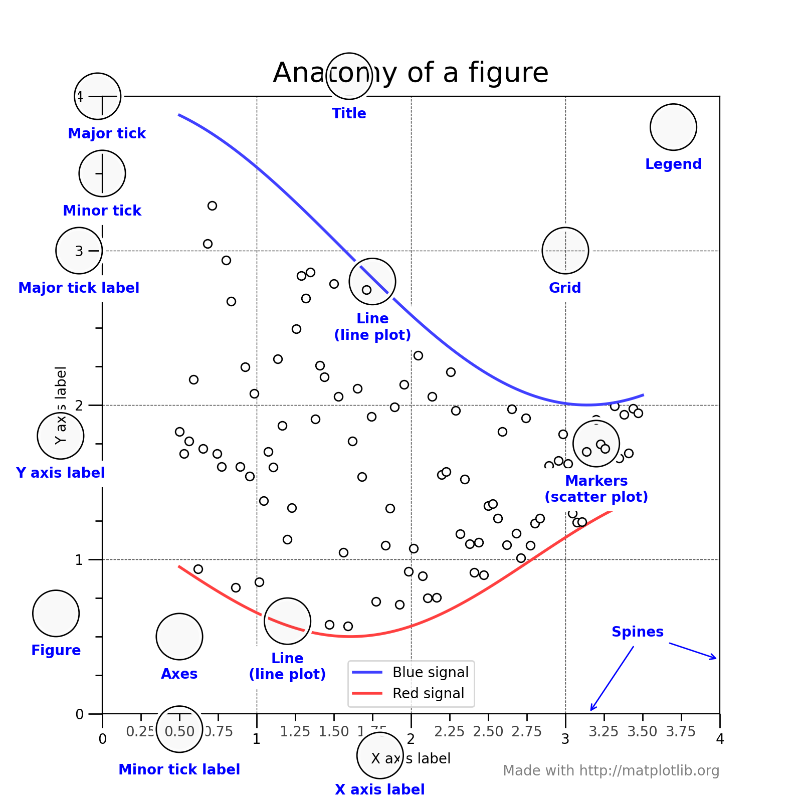 To understand the matplotlib vocabulary, a useful tool is the “anatomy of a figure”, also shown below.