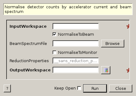 | BeamSpectrumFile | Input | string | Beam spectrum to be used for normalisation [takes precedence over default] | |