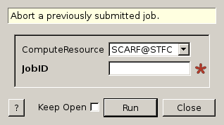 | ComputeResource | Input | string | Mandatory | The remote computer where the job is running. Allowed values: ['SCARF@STFC‘] |