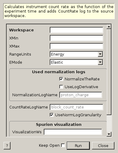 | NormalizeTheRate | Input | boolean | True | Usually you want to normalize counting rate to some rate related to the source beam intensity. Change this to ‘false’ if appropriate time series log is broken || not attached to the input workspace. |