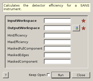 Compute the detector efficiency of SANS data. This algorithm is used by the EQSANS and HFIR SANS reduction.