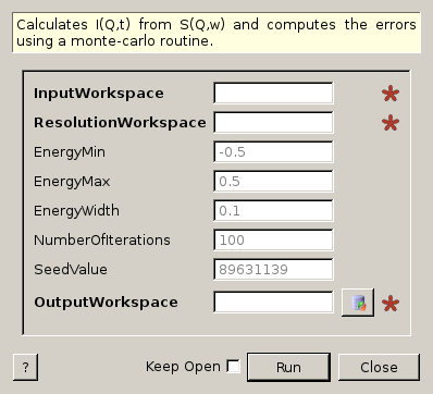 | ResolutionWorkspace | Input | MatrixWorkspace | Mandatory | The name of the resolution workspace. |