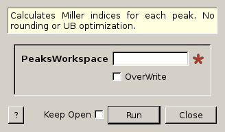 | OverWrite | Input | boolean | False | Overwrite existing miller indices as well as empty ones. |