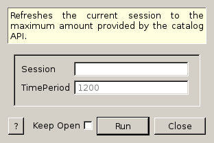 This algorithm refreshes the current session to the maximum amount provided by the catalog API. This algorithm is run when CatalogLogin is executed.