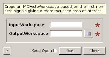 Used to crop an n-dimensional MDHistoWorkspace to the first non-zero signal values found in all dimensions.