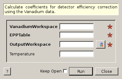 | VanadiumWorkspace | Input | MatrixWorkspace | Mandatory | Input Vanadium workspace |