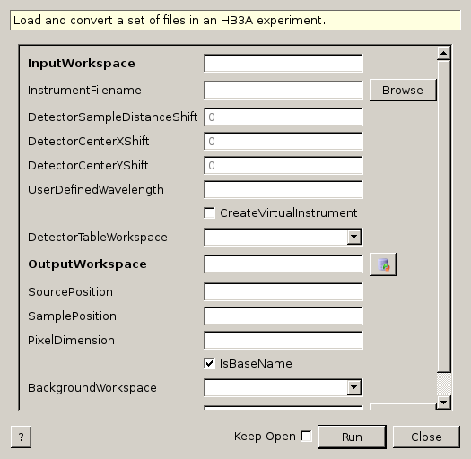 | IsBaseName | Input | boolean | True | It is specified as true if the data file names listed in InputWorkspace are base name without directory. |