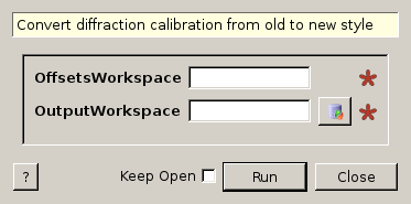 This algorithm converts old diffraction OffsetsWorkspaces to calibration table. It uses the geometry of the OffsetsWorkspace to based the values of DIFC on.