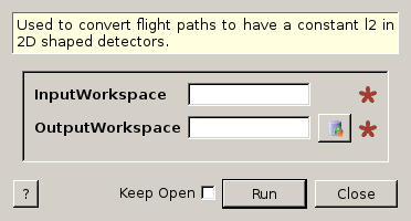 | OutputWorkspace | Output | MatrixWorkspace | Mandatory | Name of the output workspace, can be the same as the input |
