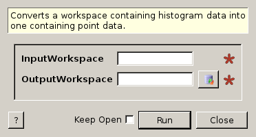 The InputWorkspace must contain histogram data. Once executed the OutputWorkspace will contain point data, where the X values are simply the centre points of the input bins.