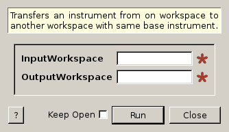 | OutputWorkspace | InOut | MatrixWorkspace | Mandatory | Name of the workspace receiving the instrument |