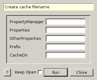 The algorithm will accept a prefix, PropertyManager, list of properties to use from the property manager (empty is use all), and a string array (or List) of other properties to use, and a directory for cache files to exist in (default described below).