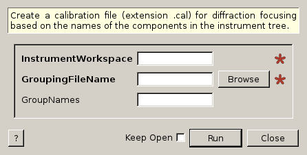 | GroupingFileName | Input | string | Mandatory | The name of the output CalFile. Allowed extensions: [‘.cal’] |