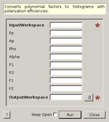 | Ap | Input | dbl list | Effective polarizing power of the analyzing system. Expressed as a ratio 0 < Ap < 1 | |