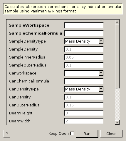 Calculates absorption corrections for a cylindrical or annular sample using Paalman & Pings format.