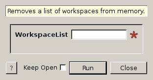 | WorkspaceList | Input | str list | Mandatory | A list of the workspaces to delete. |