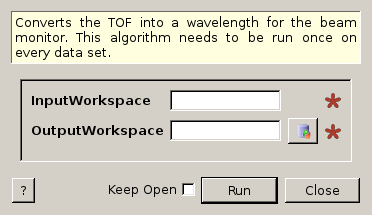 Converts the TOF into a wavelength for the beam monitor. This algorithm needs to be run once on every data set.