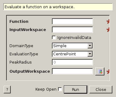 The algorithm will use the axes of the input workspace to evaluate a functions on them and store the result in the output workspace.