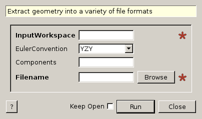 | InputWorkspace | Input | Workspace | Mandatory | Workspace containing the instrument to be exported |