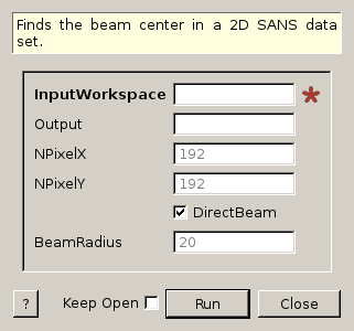 | DirectBeam | Input | boolean | True | If true, a direct beam calculation will be performed. Otherwise, the center of mass of the scattering data will be computed by excluding the beam area. |