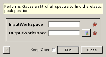 This utility algorithm attempts to search for the elastic peak position (EPP) in each spectrum of the given workspace. The algorithm estimates the starting parameters and performs Gaussian fit using the Fit v1 algorithm.
