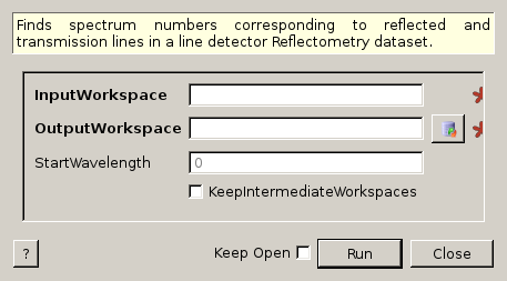 | InputWorkspace | Input | MatrixWorkspace | Mandatory | Input Reflectometry Workspace |