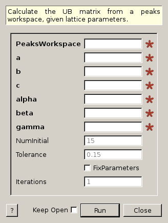 | FixParameters | Input | boolean | False | Do not optimise the UB after finding the orientation |