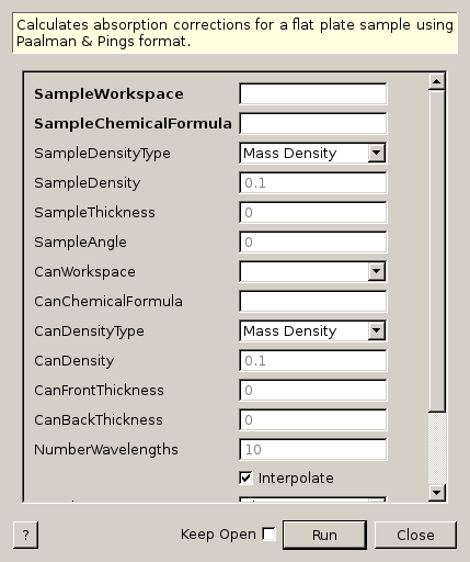 | Interpolate | Input | boolean | True | Interpolate the correction workspaces to match the sample workspace |