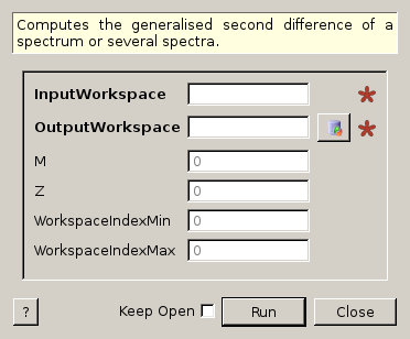 | InputWorkspace | Input | MatrixWorkspace | Mandatory | Name of the input workspace |