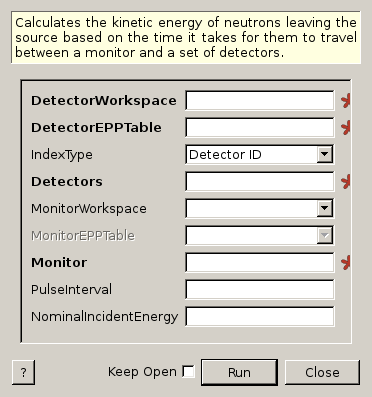 | NominalIncidentEnergy | Input | number | Optional | Incident energy guess. Taken from the sample logs, if not specified. |