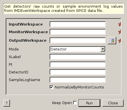 | MonitorWorkspace | Input | MDEventWorkspace | Mandatory | Name of the input monitor MDEventWorkspace paired with input data workspace. |