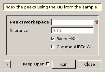 Given a PeaksWorkspace with a UB matrix stored with the sample, this algorithm will use UB inverse to index the peaks. If there are peaks from multiple runs in the workspace, the stored UB matrix will be used to get an initial indexing for the peaks from each individual run. Subsequently, a temporary UB matrix will be optimzed for the peaks from each individual run, and used to index the peaks from that run. In this way, a consistent indexing of the peaks from multiple runs will be obtained, which indexes the largest number of peaks, although one UB matrix may not produce exactly that indexing for all peaks, within the specified tolerance.