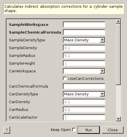 | CorrectionsWorkspace | Output | WorkspaceGroup | The corrections workspace for scattering and absorptions in sample. |