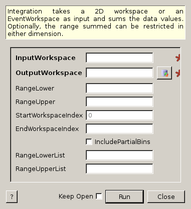 | InputWorkspace | Input | MatrixWorkspace | Mandatory | The input workspace to integrate. |