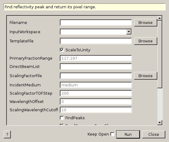 | FindPeaks | Input | boolean | False | Find reflectivity peaks instead of using the template values |