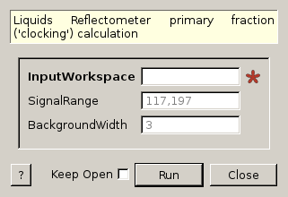 Used in the Liquids Reflectometer reduction at the SNS, this algorithm computes the primary fraction (aka ‘clocking correction’) for the given data. The primary fraction is the fraction of the counts within a specified range that should contain the reflected beam to the total number of counts on the detector.