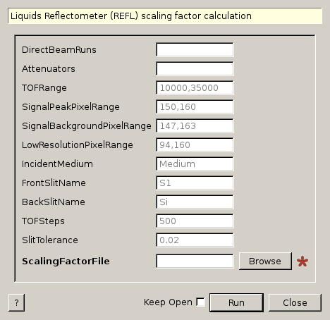 | DirectBeamRuns | Input | int list | Run number of the signal run to use | |