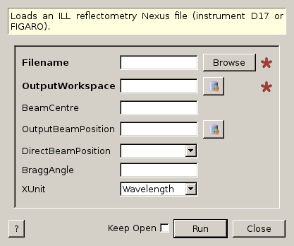| Filename | Input | string | Mandatory | Name of the Nexus file to load. Allowed extensions: [‘.nxs’] |