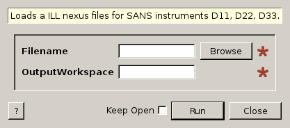 This loads the nexus files produced by the SANS instruments D11, D22, D33 at the ILL. For D33, it supports both monochromatic and TOF modes. This loader reads the detector positions from the nexus file and places the detectors accordingly. For D11 and D22 it supports the nominal and low resolution modes (pixel splitting). The output is a histogram workspace with unit of wavelength (Angstrom). It has a single bin for monochromatic, and many bins (ragged) for TOF mode for D33.