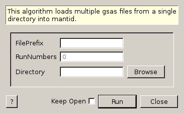 This algorithm loads multiple gsas files from a single directory into mantid.