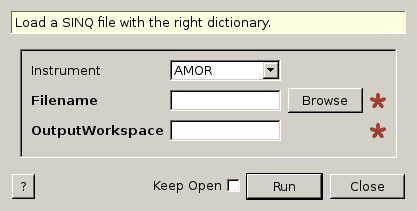 In most cases, the algorithm LoadSINQ v1 can be used instead, especially if the file is located in one of the standard data directories. LoadSINQFile is mainly useful if a SINQ-file from a specific path or a non-standard file name has to be loaded.