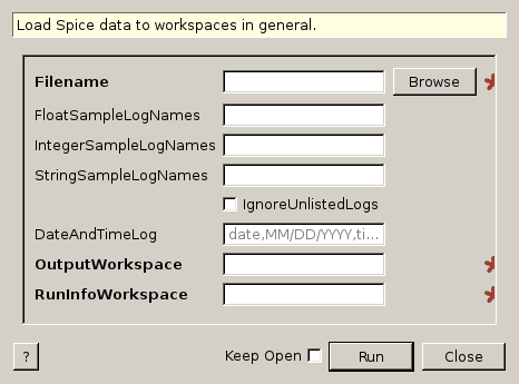 | IntegerSampleLogNames | Input | str list | List of log names that will be imported as integer property. | |