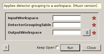 | DetectorGroupingTable | Input | TableWorkspace | Mandatory | Table with detector grouping information. Check wiki page for table format expected. |