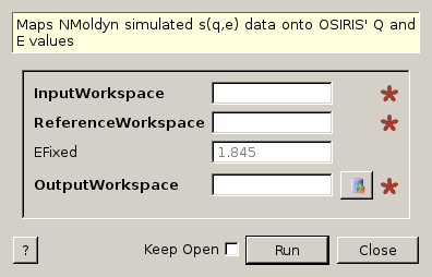 | ReferenceWorkspace | Input | Workspace | Mandatory | Reference OSIRIS workspace to provide values |