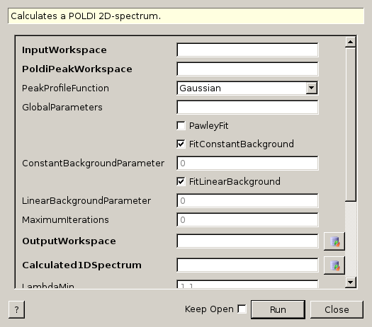 | InputWorkspace | Input | MatrixWorkspace | Mandatory | Measured POLDI 2D-spectrum. |