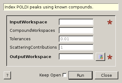 | InputWorkspace | Input | TableWorkspace | Mandatory | Workspace that contains unindexed peaks. |