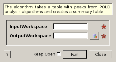 This algorithm takes the peak table resulting from one of the POLDI peak fitting routines (for example PoldiFitPeaks1D v2) and summarizes the data in another table with the relevant information.